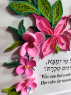 "Translated from the Hebrew (אֵֽשֶׁת-חַיִל – “eishet chayil”) the woman described here is a mighty woman. She is no passive spectator but an active and powerful partner in the life of her family and community.